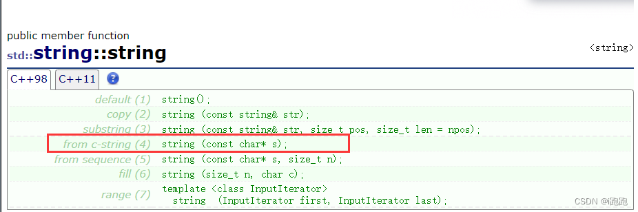 c++98 in string Common constructors