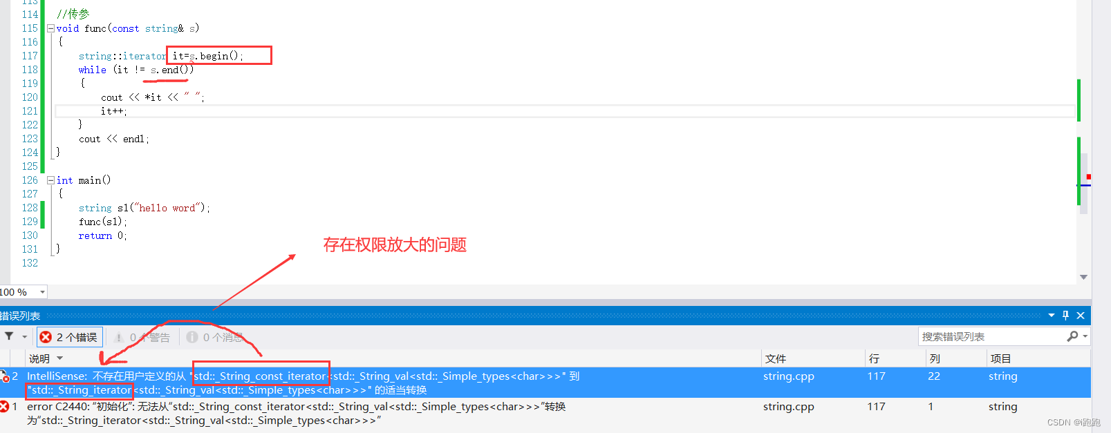To solve the problem of making permissions the same , Then the iterator type should be const, The changes are as follows :