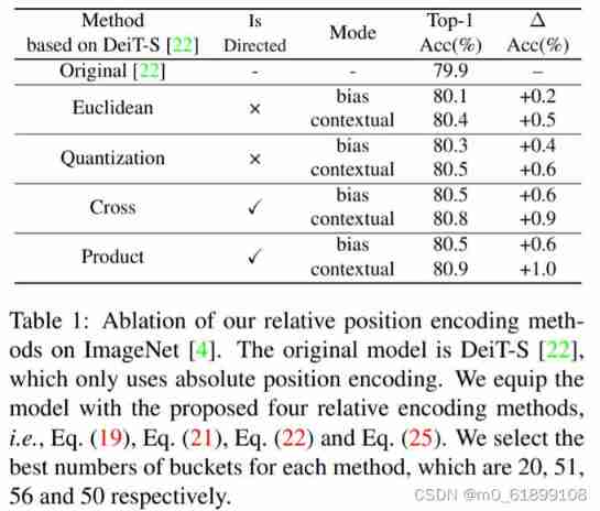 On the other hand , The language modeling adopts the original relative position coding , The input data is a one-dimensional word sequence . But for visual tasks , The input is usually 2D Image or video sequence , The pixels have a high spatial structure . It's not clear : Whether the extension from one dimension to two dimensions is suitable for visual model ; Whether direction information is important in visual tasks ?