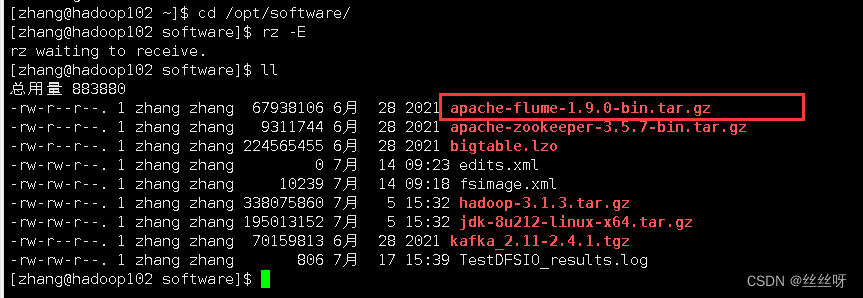 [[email protected] software]$ tar -zxvf apache-flume-1.9.0-bin.tar.gz -C /opt/module/