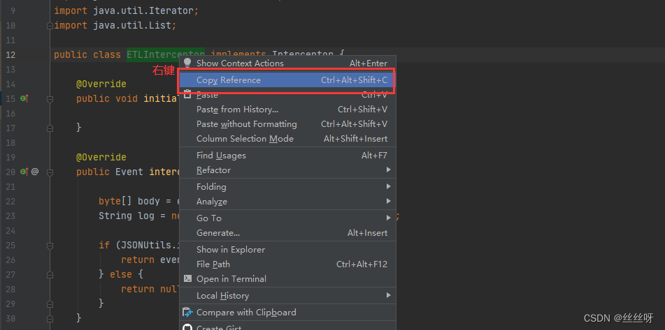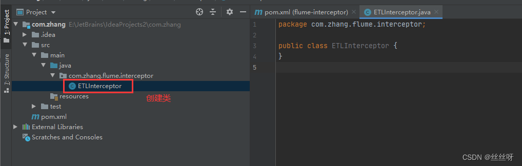 在com.zhang.flume.interceptor包下創建ETLInterceptor 類