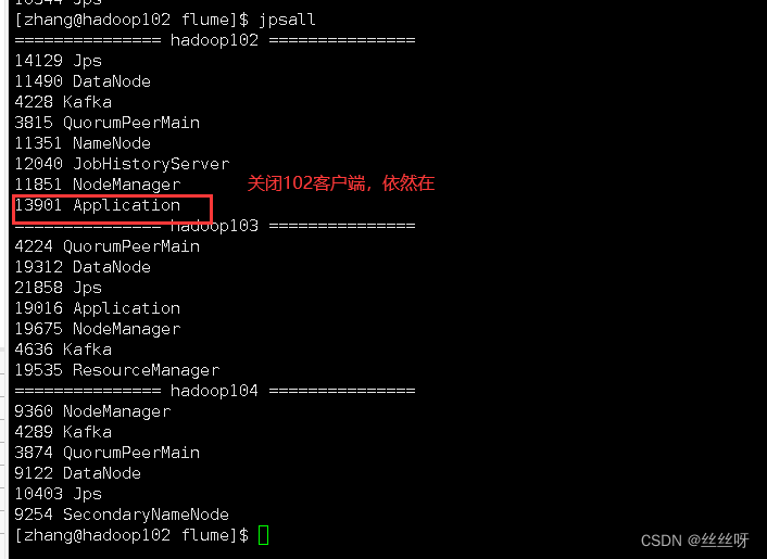 [[email protected] flume]$ nohup /opt/module/flume/bin/flume-ng agent --conf-file /opt/module/flume/conf/kafka-flume-hdfs.conf --name a1 -Dflume.root.logger=INFO,LOGFILE >/opt/module/flume/log2.txt 2>&1 &