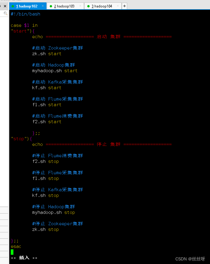 在脚本中填寫如下內容 (注意關閉順序,停止Kafka需要一定的時間,如果關閉Kafka緊接著關閉Zookeeper,可能會由於延時問題,不能正常關閉)