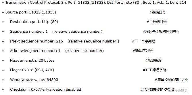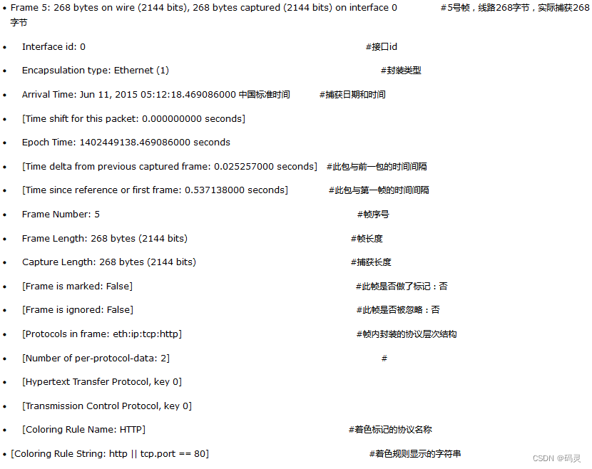 This is the most important information , Used to view each field in the agreement . and OSI The seven layer models are : The physical layer 、 Data link layer 、 The network layer 、 Transport layer 、 The session layer 、 The presentation layer 、 application layer .