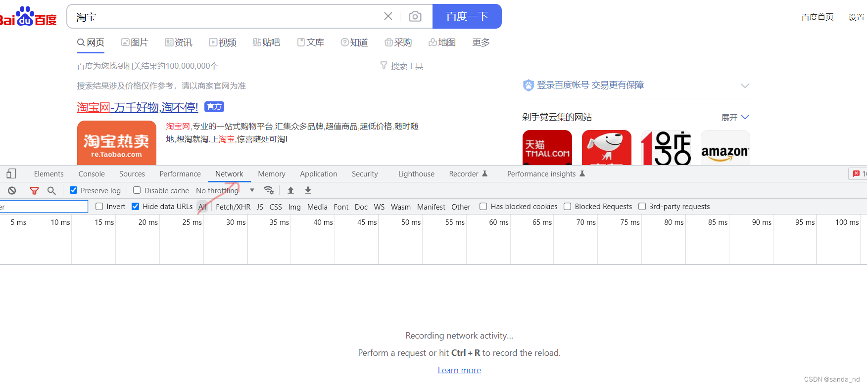 1、在搜索网页中按下F12(以chrome浏览器为例)