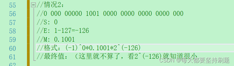 At this time , The exponent of a floating point number E be equal to 1-127( perhaps 1-1023) That's the true value ( Regulations )