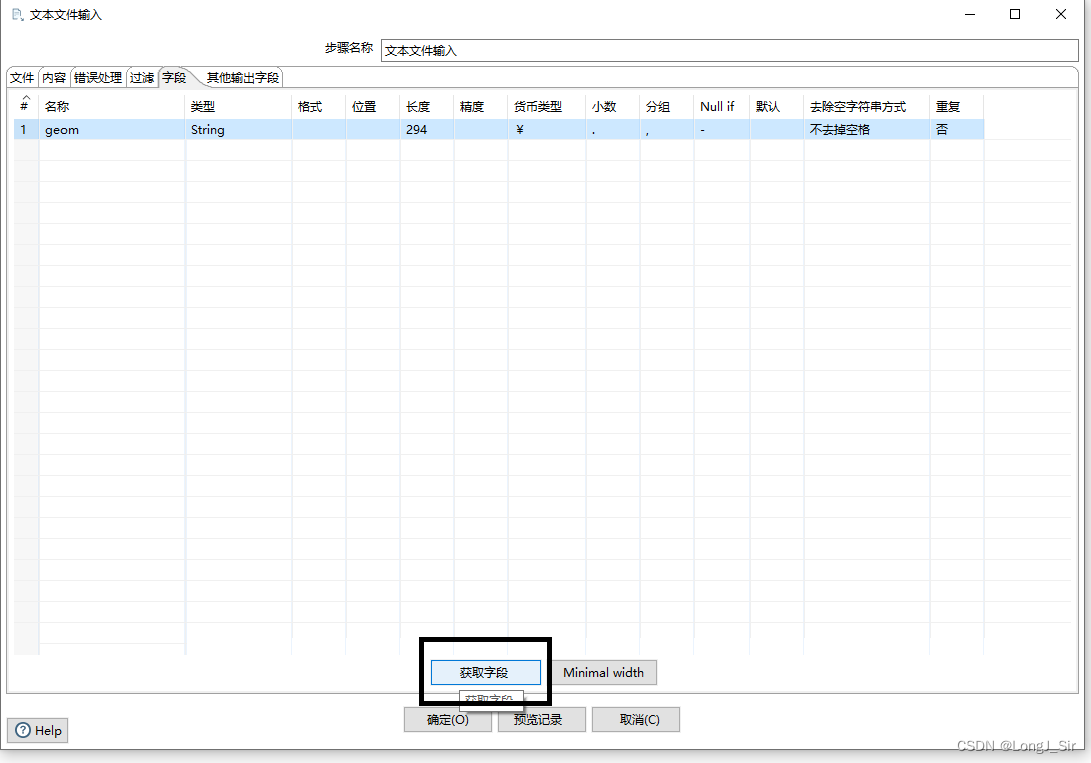 在“内容”管理卡将格式改为Unix,在“字段”管理卡点击获取字段即可对定义字段名称: