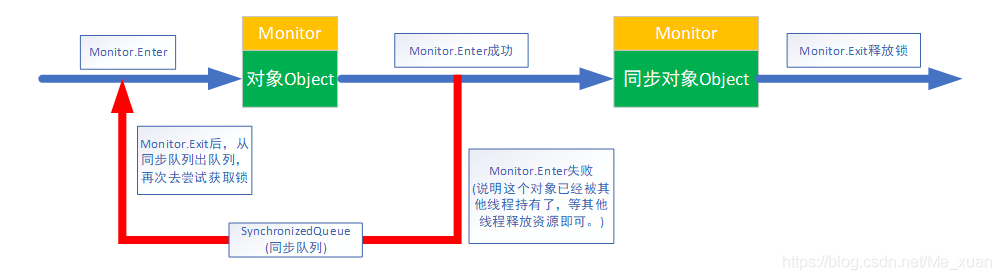 3.此时若是由其他线程要来锁住这个对象,发现这个计数器不是初始值0 ,则阻塞在那,等到持有monitor的线程执行完,释放完所有的锁,计数器为0时,这时候再来尝试获取monitor的所有权。