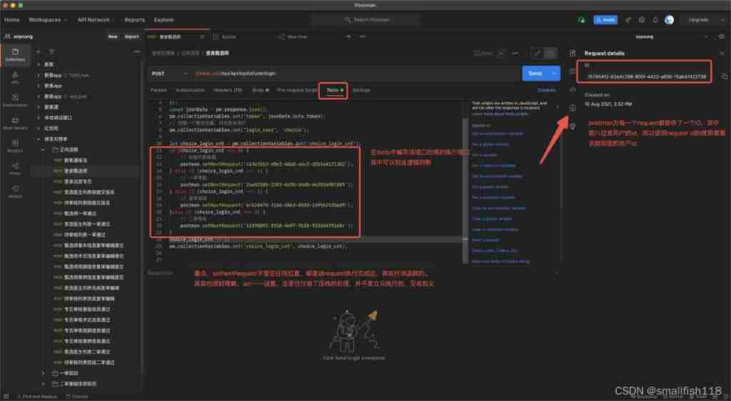 Although this knowledge point only involves a function , But it's really important . at present postman The latest version has been provided flows Visual editing , Once again, it's lower postman The threshold of entry . But it seems that because it is the first edition , Logical judgment cannot be realized ,postman There are no official tutorials , So for the time being, use setNextRequest better .