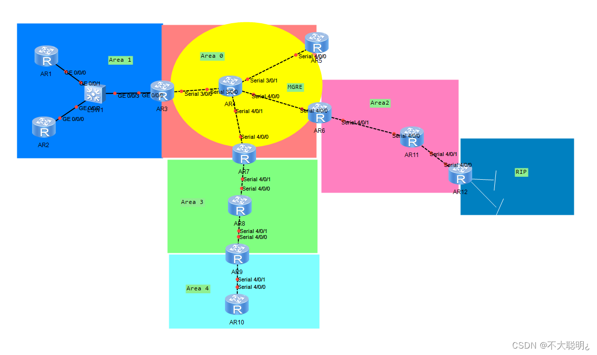 Completely NSSA – Complete and incomplete peripheral regions ; In general NSSA On the basis of , Step closer and refuse 3 Class LSA, from ABR Generate a 3 Class default , First, configure the area as normal NSSA, And then only in ABR Completely defined NSSA that will do