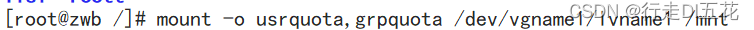 ①临时挂载:mount -o usrquota,grpquota /dev/vgname1/lvname1 /mnt