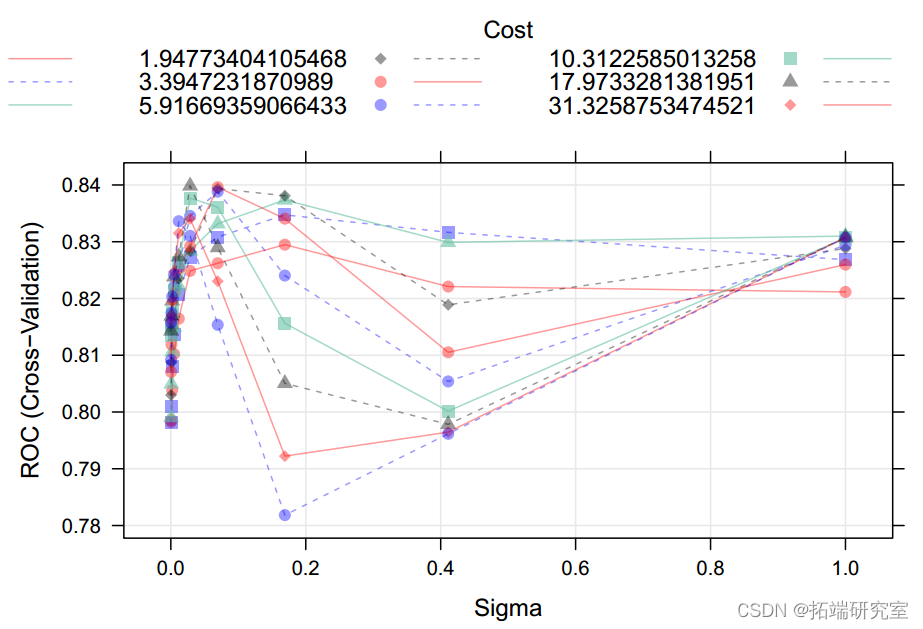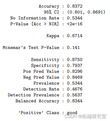 teDt <wi[-idxTrain,]Linear model Multiple logistic regression shows , stay 11 Of the predictors , Volatile acidity 、 Citric acid 、 Free sulfur dioxide 、 Total sulfur dioxide 、 Sulfate and alcohol are significantly related to wine quality (P value < 0.05), Explain the total variance 25.1%. Liquor quality . When applying this model to test data , Accuracy is 0.75(95%CI:0.71-0.79),ROC by 0.818, It shows that the data fit well . When performing punitive logistic regression , We found that maximization ROC when , The optimal tuning parameters are alpha=1 and lambda=0.00086, Accuracy is 0.75(95%CI:0.71-0.79),ROC Also for the 0.818. because lambda Close to zero and ROC Same as logistic regression model , So the punishment is relatively small ,