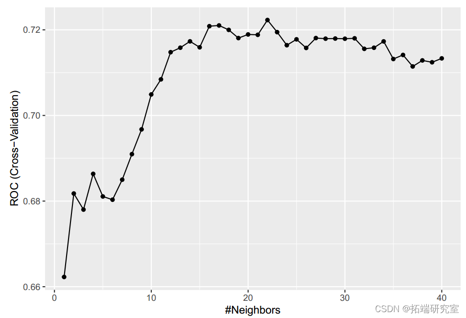 take MARS When models are applied to test data , Accuracy is 0.75(95%CI:0.72,0.80),ROC by 0.823. We also implemented KNN Model classification . When k be equal to 22 when ,ROC Maximize .KNNmodel The accuracy is 0.63(95%CI:0.59-0.68),ROC by 0.672.