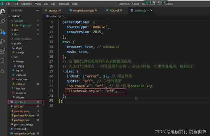 open webpack Of eslint To configure , Turn off line breaks