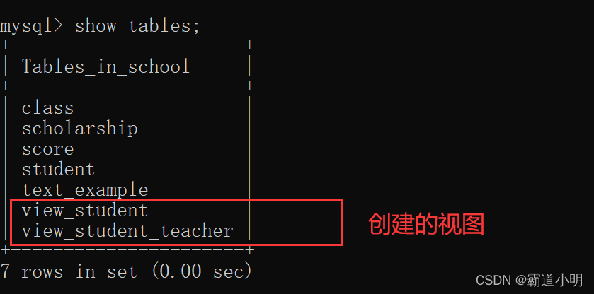 2.使用SHOW TABLES语句查看视图基本信息