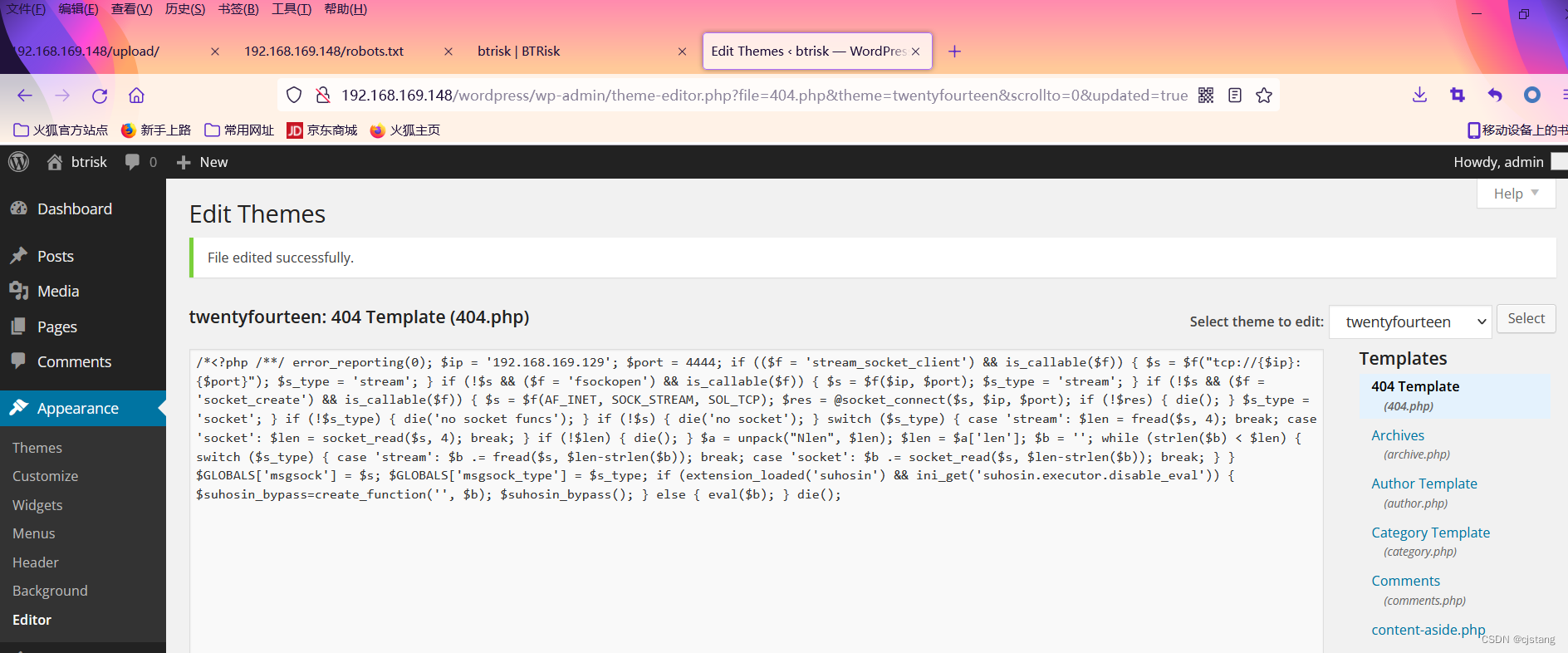 URL Medium visit :http://192.168.169.148/wordpress/wp-content/themes/twentyfourteen/404.php,