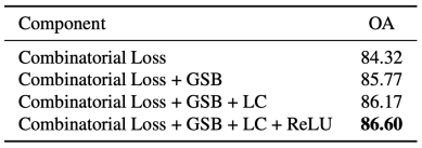 surface 1: By gradually adding HRN Key parts of the network : Level specific feature extraction layer (granularity-specific block, GSB)、 A linear combination of features between levels (linear combination, LC)、 And finally, the non-linear transformation of combined features (ReLU) get CUB-200-2011 The corresponding relabel proportion of the last level in the dataset is 0% Of OA(%) experimental result .