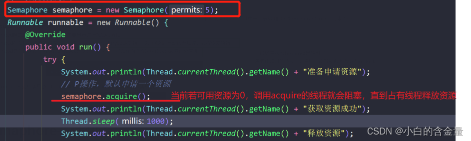 Semaphore Semaphore It's a counter , Indicates the number of currently available resources .