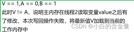 V The value of represents the latest read main memory value ,A Represents the value written in the current working memory ,B Is the value you want to write back to the main memory