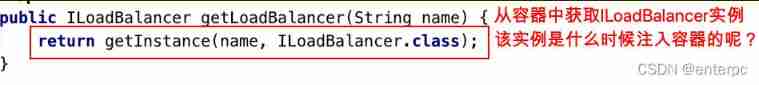 - LoadBalancerClient class ( Implementation class RibbonLoadBalancerClient, stay ⽤)