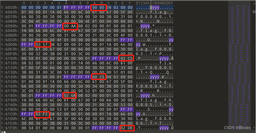 并且经过查找,一共1024个,而且后面的跟在FFFFFFFF后面的数字也在变化,并且随便看了十几个,发现总值不超过1024,猜测用这个当做那1024个提取出来的文件的顺序。