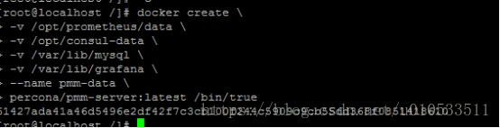 docker create \ -v /opt/prometheus/data \ -v /opt/consul-data \ -v /var/lib/mysql \ -v /var/lib/grafana \ --name pmm-data \ percona/pmm-server:latest /bin/true