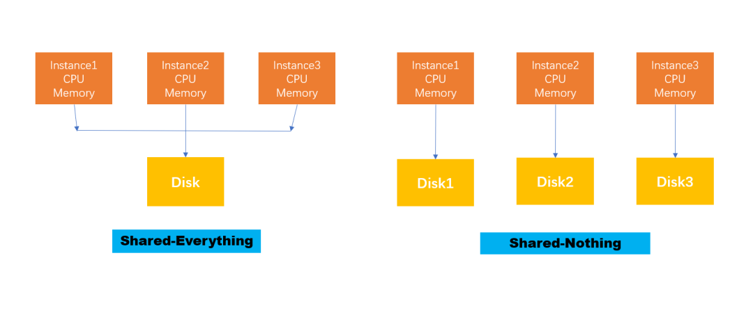 Databases are divided according to data distribution , It can be divided into centralized database and distributed database . A centralized database is one or more database instances that manage one piece of data , Every database instance can see all the data , Belong to Shared-Everything framework . Distributed database is that each database instance manages its own data , Total data is the sum of data managed by all database instances , Belong to Shared-Nothing framework .