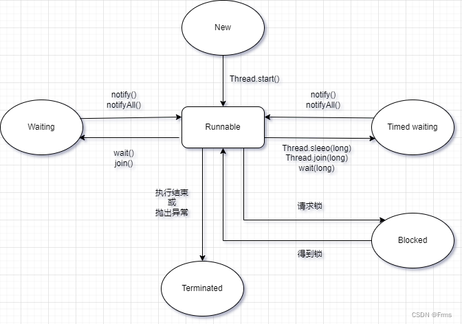 java线程状态在运行的生命周期可能会处于一下6中状态之一。