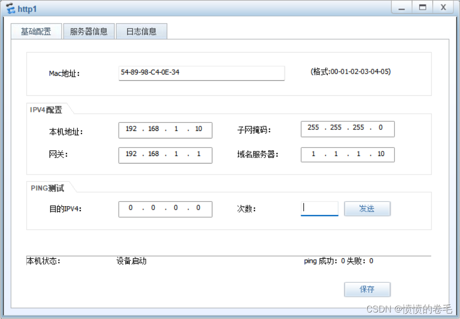 第四步:加入http服务器和dns服务器配置ip地址,网关地址,域名服务器地址