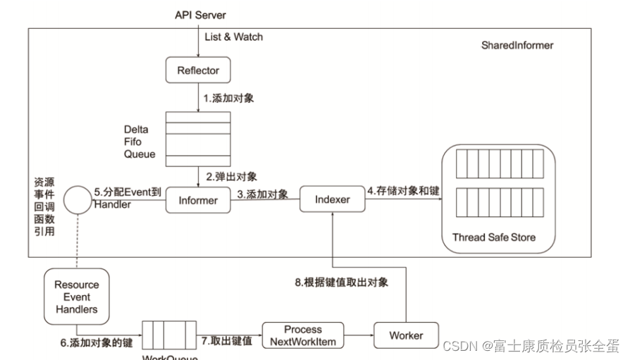 It's on it APIserver,shareinformer adopt list watch Focus on an object , So-called list watch It's number one , He will put all the objects list Come back , Second, as a long connection , Pay attention to its subsequent changes , All of these frameworks are generic .