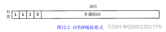 多播组地址包括为 111 0的最高4 bit和多播组号。它们通常可表示为点分十进制数,范围从2 2 4 . 0 . 0 . 0到2 3 9 . 2 5 5 . 2 5 5 . 2 5 5。