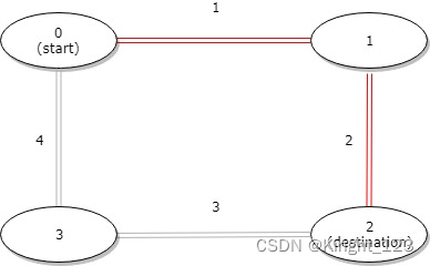 Input :distance = [1,2,3,4], start = 0, destination = 2