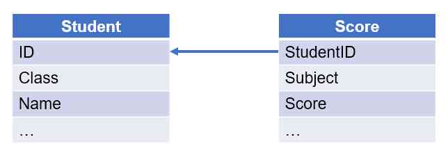 【例 6】 查询两科分数差超过 30 分的学生。成绩表和学生表如下: