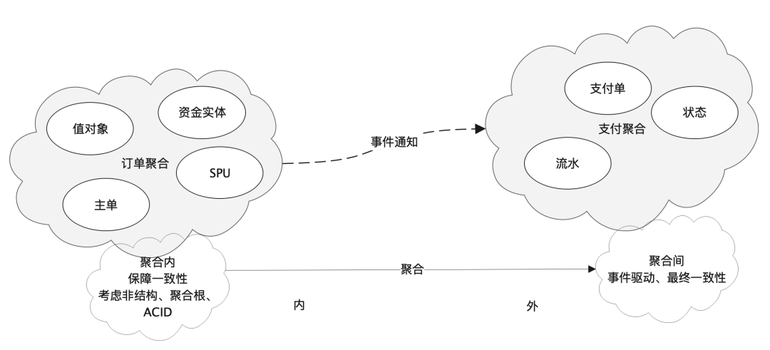 Within the aggregate , Need to ensure strong consistency , The method needs to consider the unified storage of aggregated root entities ;