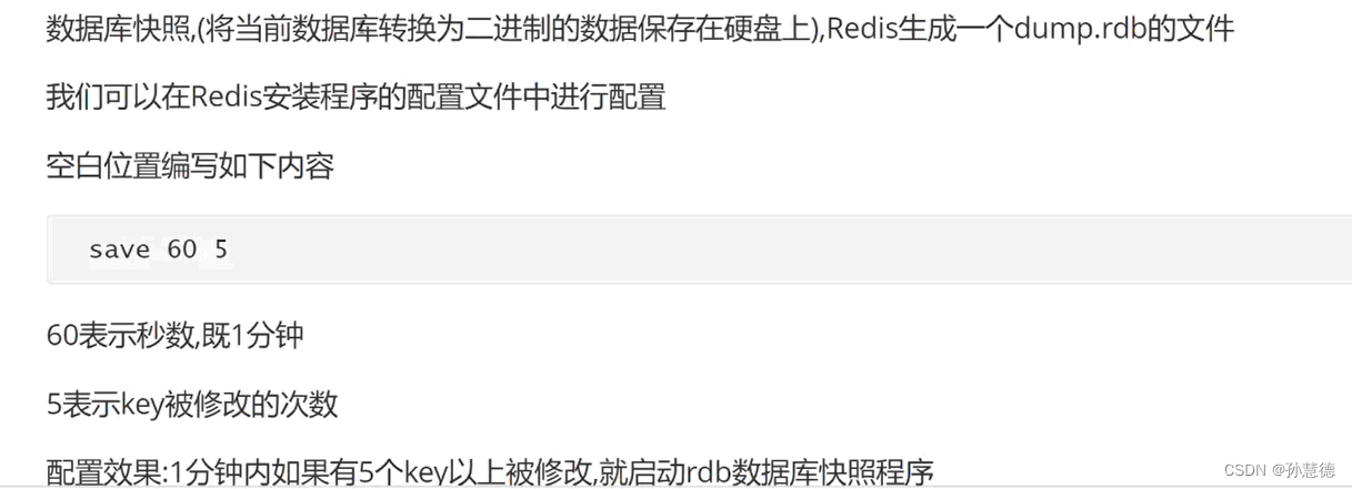 1.RDB: Generate a snapshot of the current data and save it on the hard disk .