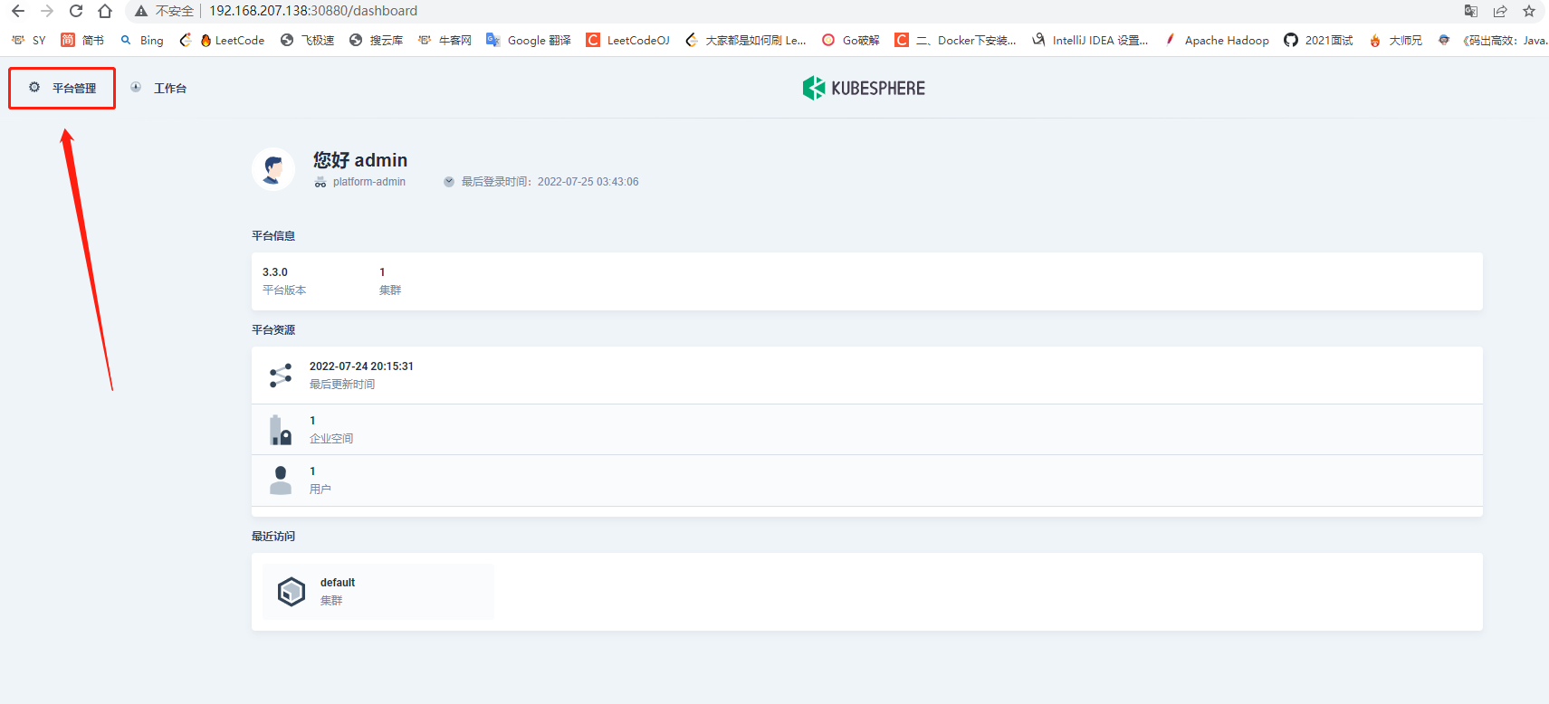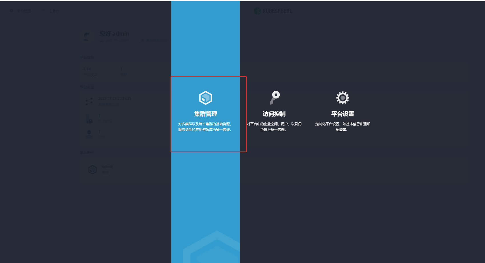 1 选择平台管理→集群管理