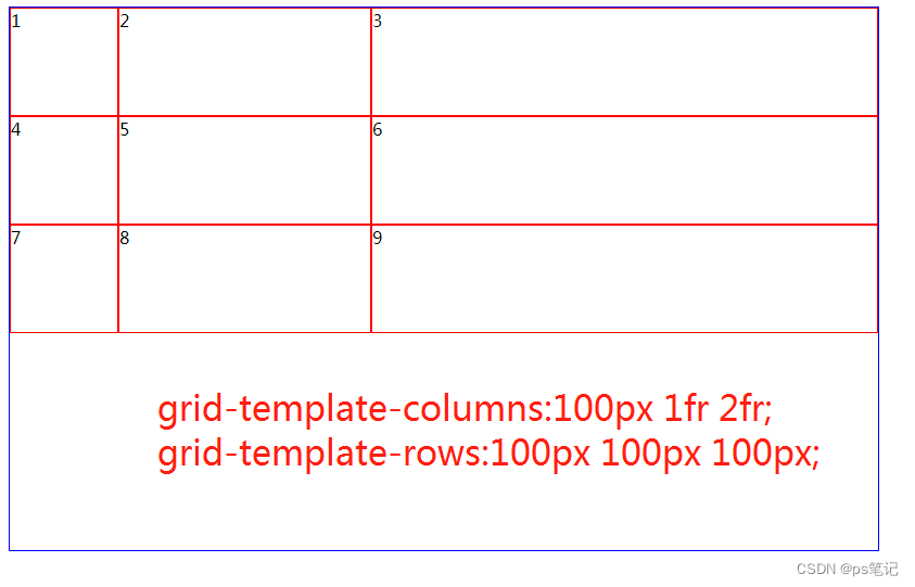 Grid-template-rows:100px 100px 100px }