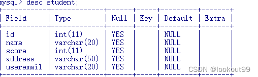 4. Use sql Statement to query the table id,name, and address All the contents of the field