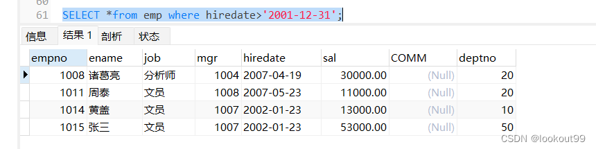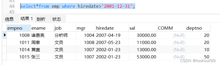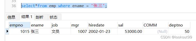 6. The name in the query table is the name of all employees consisting of three words ename,job,sal The corresponding information of the field