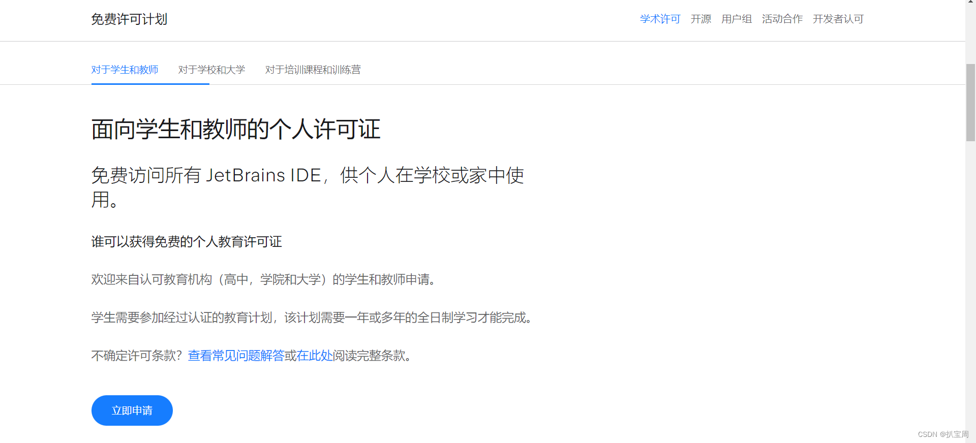 1、 Click the link , Go to the next page , Choose to apply immediately
