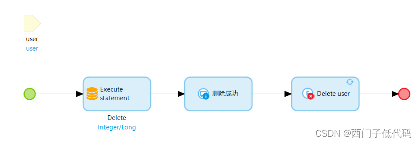 微流类似C++/Java 的函数,以绿色圆圈为Start event,红色圆圈为End event,一个微流只能有一个Start event,可以有多个End event。