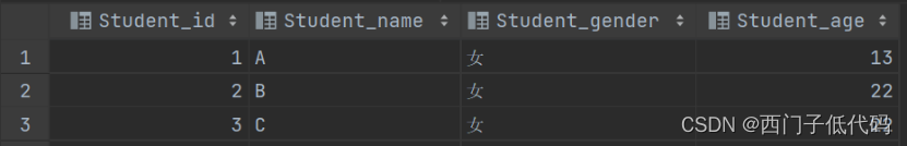 'Select Student_id,Student_name,Student_gender,Student_age from user'