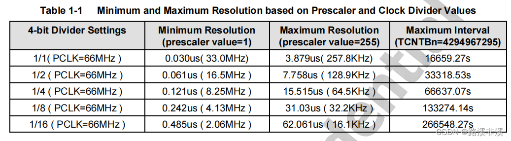 (5) Calculate , Two stage frequency division , The minimum frequency division is 1/1( It could be 1/2), The maximum frequency division is 1/256×16(1/4096).