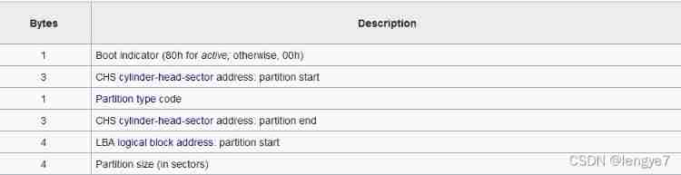 Partition Type:1 byte , Partition type , The specific partition needs to be viewed separately .