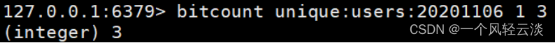 bitcount<key>[start end] 统计字符串从start字节到end字节比特值为1的数量