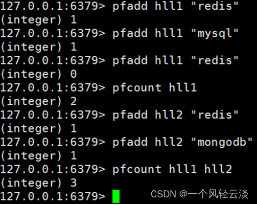 将所有元素添加到指定HyperLogLog数据结构中。如果执行命令后HLL估计的近似基数发生变化,则返回1,否则返回0。