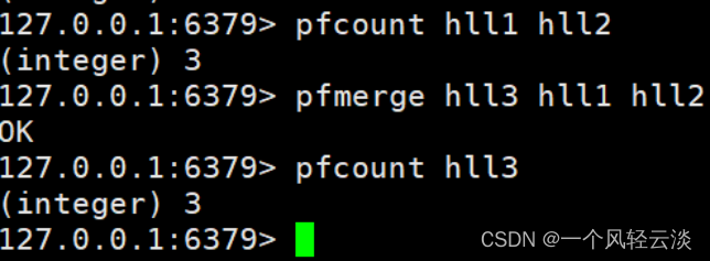 pfcount<key> [key ...] 计算HLL的近似基数,可以计算多个HLL,比如用HLL存储每天的UV,计算一周的UV可以使用7天的UV合并计算即可
