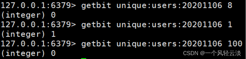 getbit<key><offset>获取Bitmaps中某个偏移量的值
