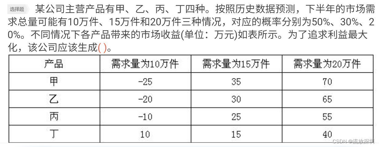Ding :EMV=(10×50%)+(15×30%)+(40×20%)=17.5